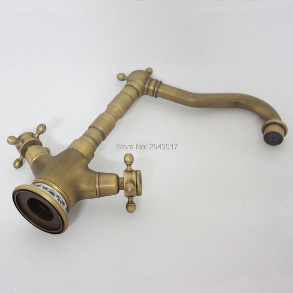 Mitigeur de lavabo en laiton Antique robinet de salle de bains mitigeur de lavabo pivotant sur le pont Base en céramique robinets de lavabo ZR132.