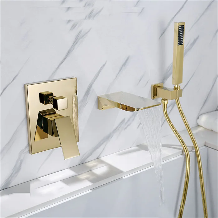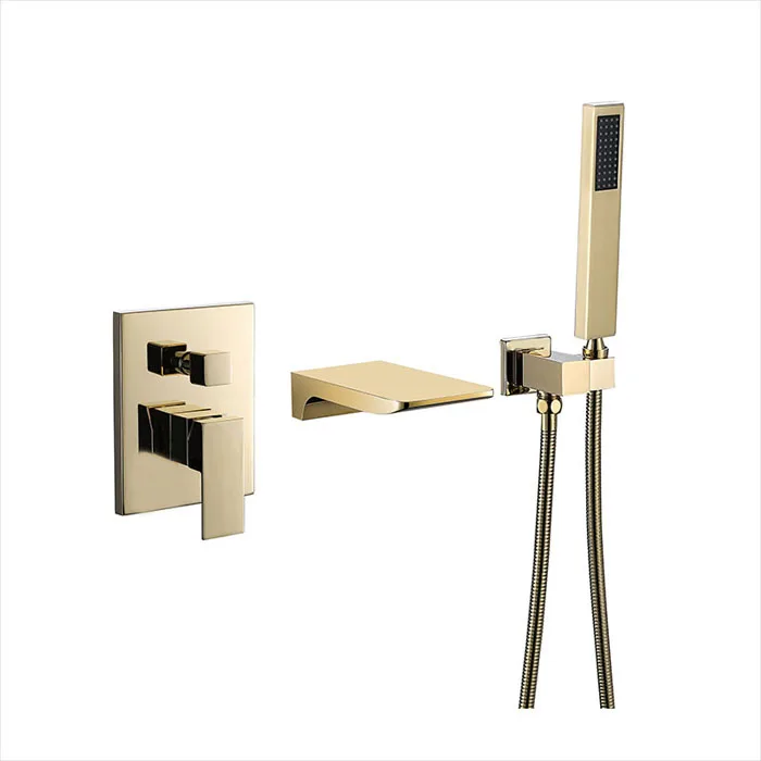 Mitigeur de lavabo à montage mural robinet de baignoire à bec carré douchette à main robinet de baignoire et de douche BF909.