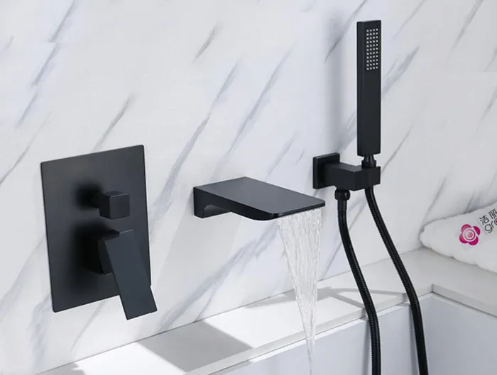 Mitigeur de lavabo à montage mural robinet de baignoire à bec carré douchette à main robinet de baignoire et de douche BF909