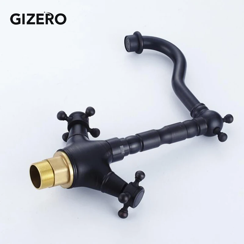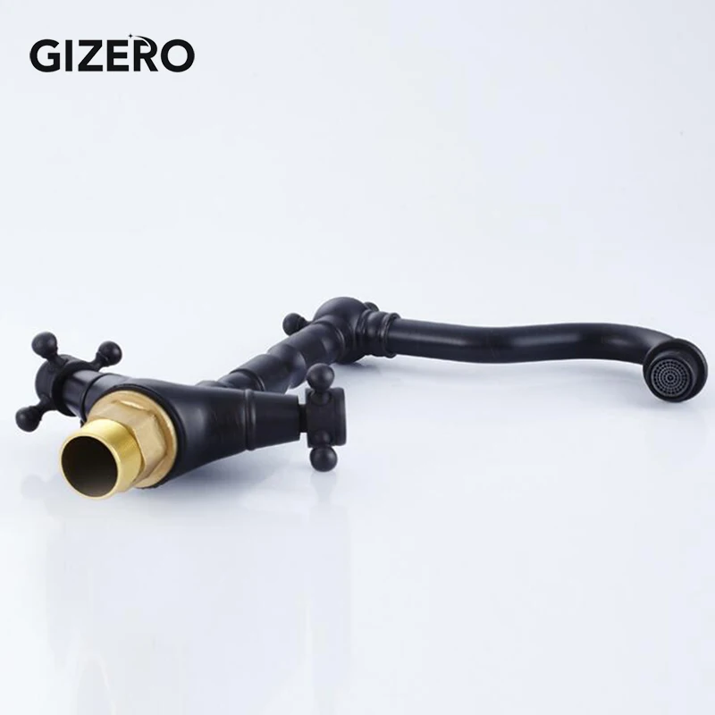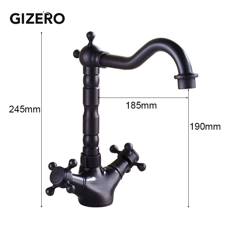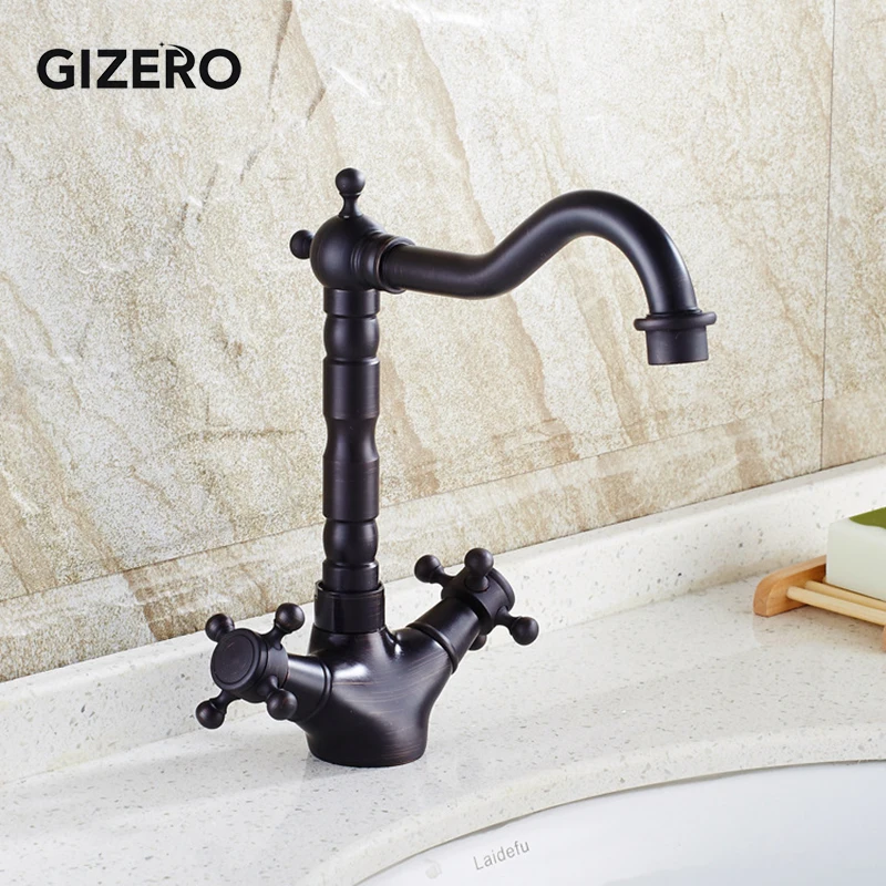 Mitigeur de lavabo noir Antique monté sur le pont mélangeur chaud et froid à double poignée avec bec pivotant ZR291
