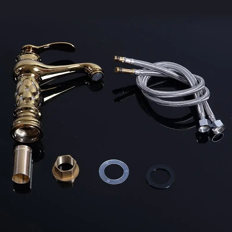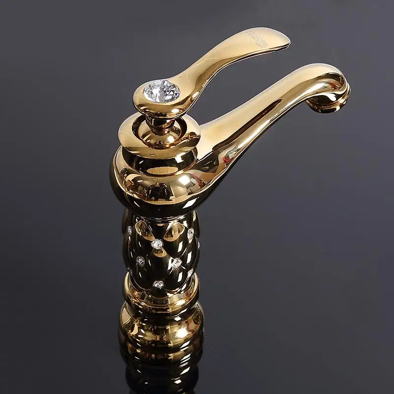 Mitigeurs lavabo diamant classique laiton mitigeur à poignée unique mitigeur en cristal doré pour lavabo.