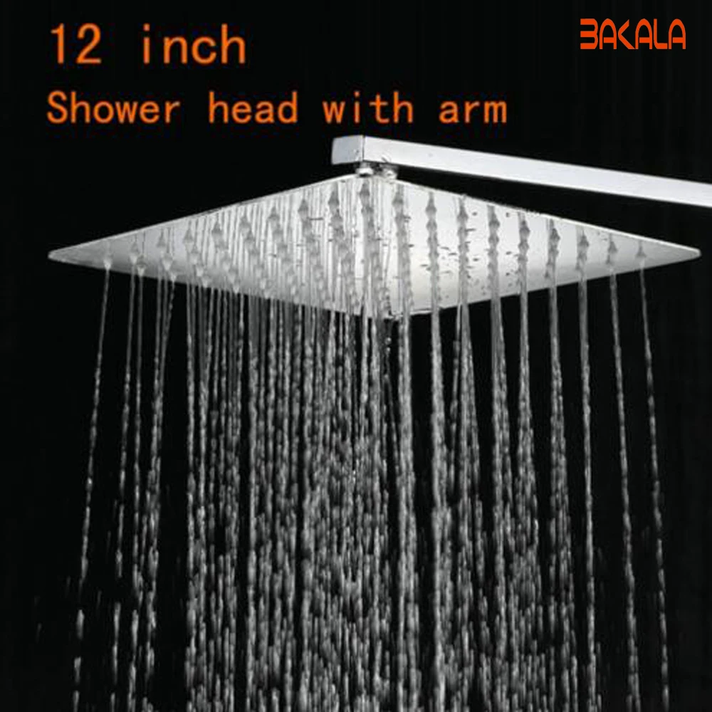 Pomme de douche en acier inoxydable BAKALA 12 pouces avec bras pomme de douche murale Ultra mince avec bras de douche CP-1212A