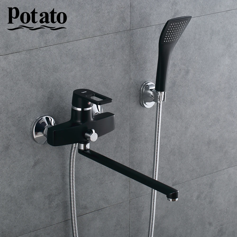 Potato Robinet de douche en laiton salle de bain bain robinet mitigeur main douche tête ensemble mural douche ensemble baignoire 2 couleurs p2230-.