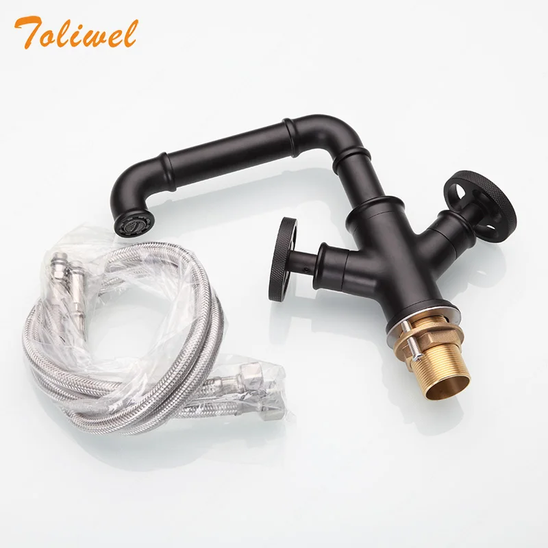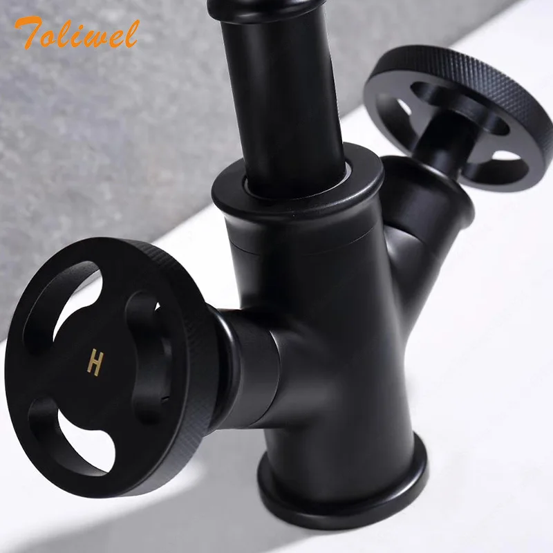 Robinet de salle de bains noir en laiton mitigeur de lavabo eau chaude et froide Style industriel nouveauté