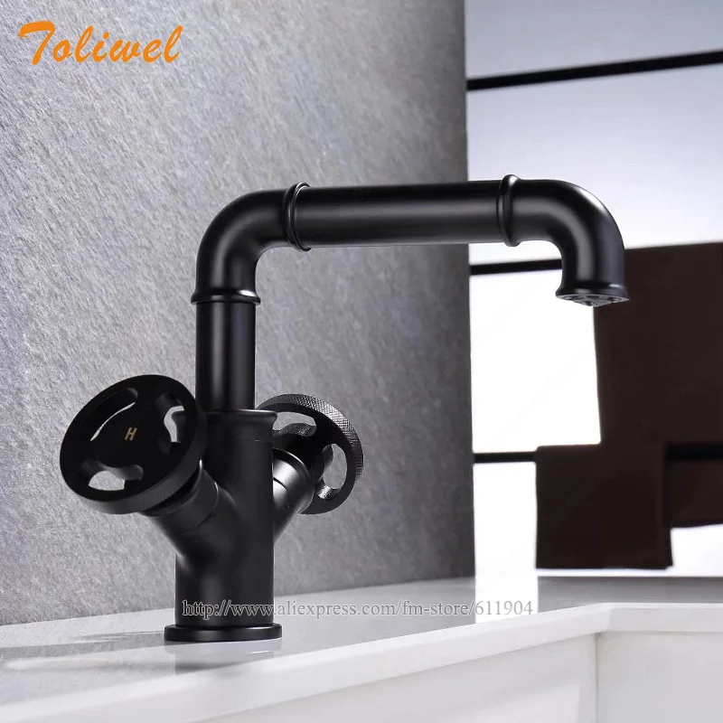 Robinet de salle de bains noir en laiton mitigeur de lavabo eau chaude et froide Style industriel nouveauté.