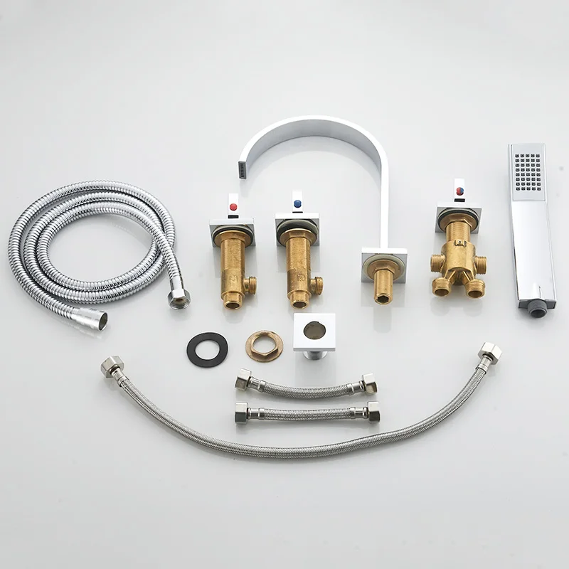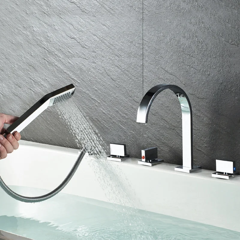 ROVATE salle de bain baignoire robinet 2 Mode eau froide et chaude mélangeur grue robinet de bain avec douchette en laiton chromé fini.