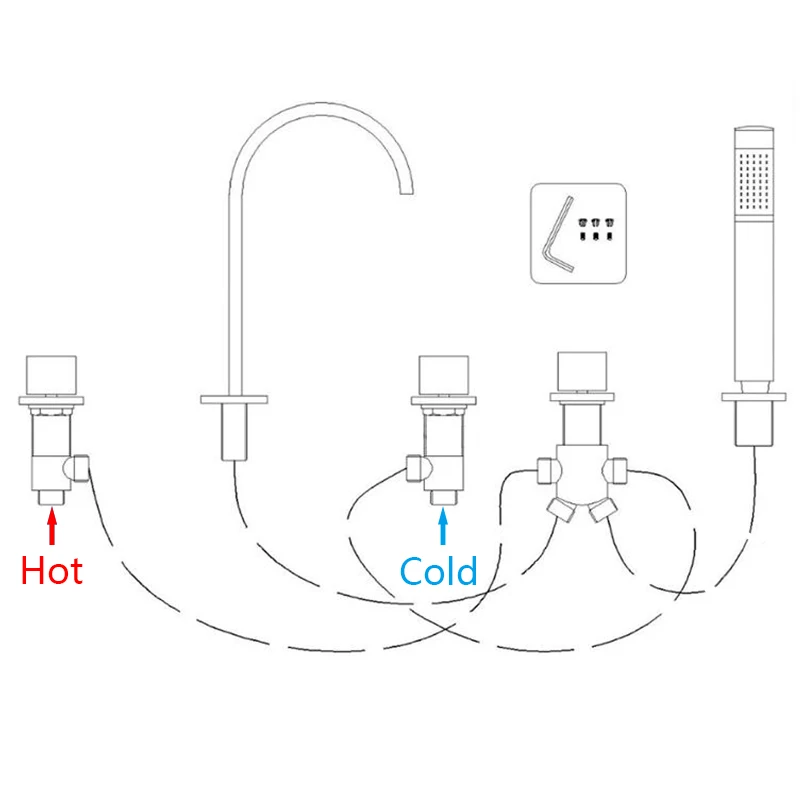 ROVATE salle de bain baignoire robinet 2 Mode eau froide et chaude mélangeur grue robinet de bain avec douchette en laiton chromé fini