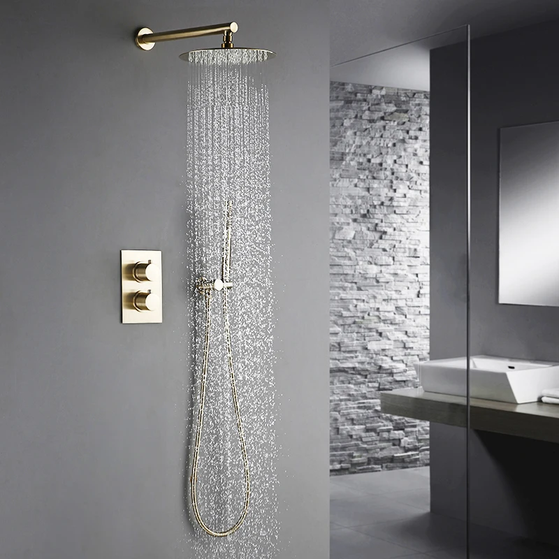 Smesiteli robinet de salle de bains douche or brossé ensemble 2 cadran 2 voies déviateur de commande thermostatique vanne de mélange ensembles de douche en or brossé