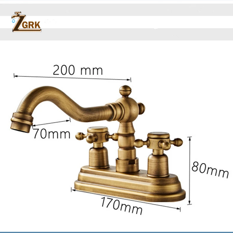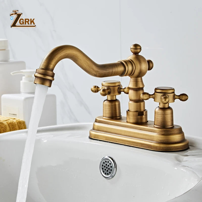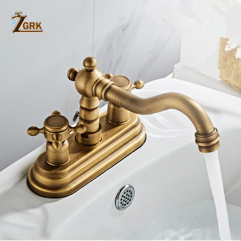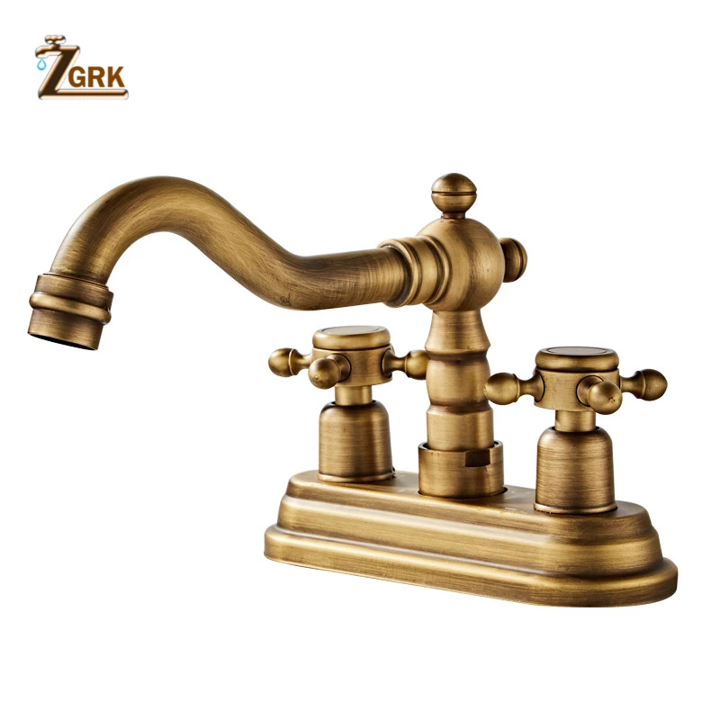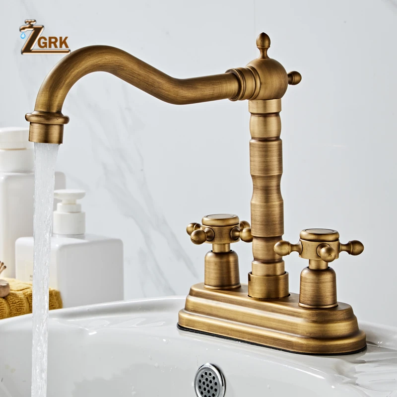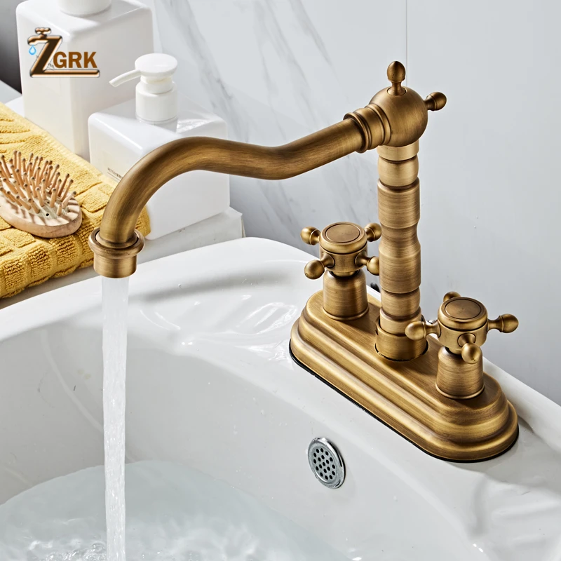 ZGRK-robinet mélangeur de lavabo pivotant de salle de bains en laiton Antique pour baignoire à deux poignées monté sur le pont 360