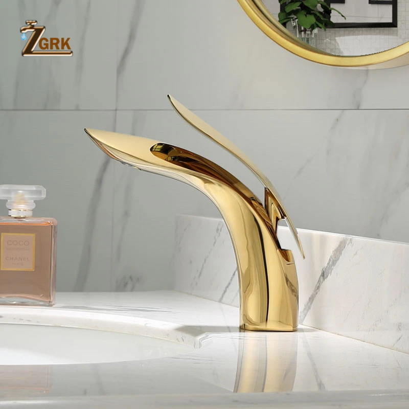 ZGRK robinet mitigeur de lavabo finition dorée robinet de salle de bains élégant robinet mitigeur de lavabo eau chaude et froide